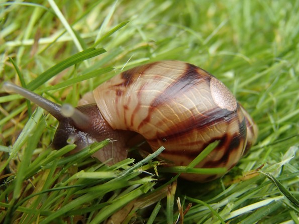 Super je šneček z první snůšky mých "retek". Maminka a tatínek jsou tedy Louis a Lee. Při kontrole 2 stejně starých snůšek od retek, ve věku 48 dní (24. 5. 2013), byl ze všech největší. Při prvním měření dosahoval délky 2,86 cm a vážil 3 g. Má krásnou proužkatou ulitu a vyvíjí se velice dobře. 24. 5. 2013 byl přesunut se všemi ostatními z "líhně" do většího akvária. 29. 5. 2013 jsem při focení zapomněla, že ho mám vedle sebe, položila na něj ruku a odlomila mu kus růstového proužku. Naštěstí se mu nic vážného nestalo.